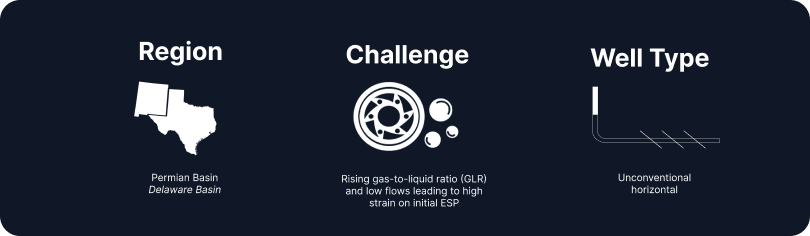 A Delaware Basin customer required stabilization of a horizontal well where pronounced GLR variability and elevated motor temperatures were driving repeated shutdowns.